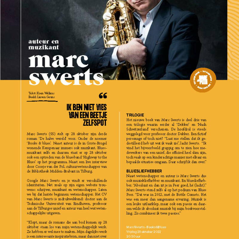 Marc Swerts – Books&Blues – Vrijdag 28 oktober 2022 – Western Saloon Pony Express Peer Schrijver Marc Swerts – Books&Blues – Vrijdag 28 oktober 2022 – Western Saloon Pony Express Peer